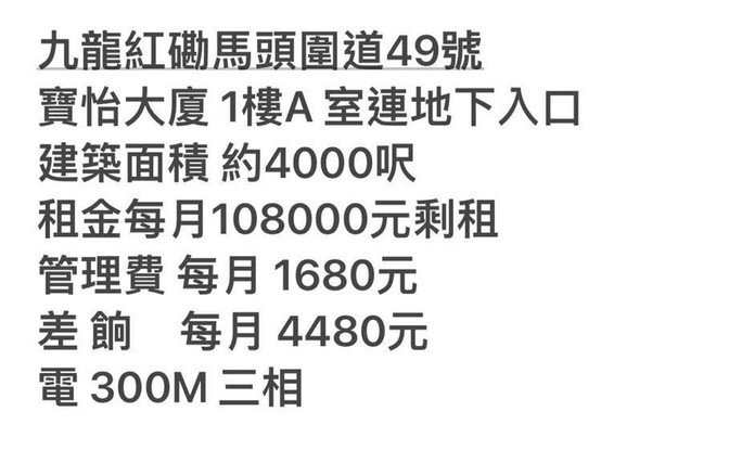 · 1/F連地下入口 ;前租客是大家樂;樓底高9尺